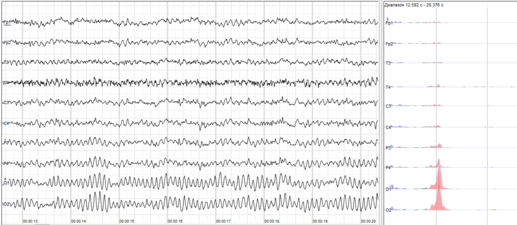 Натомість, у дітей домінують більш низькочастотні коливання, що класифікуються як θ-діапазон. По мірі дорослішання та дозрівання мозку домінантний ритм стає більш високочастотним, і в 13-15 років формується “дорослий” альфа-ритм. Тож, динаміка переходу тета-коливань в альфа-діапазон може певною мірою трактуватися як індикатор дозрівання мозкових нейромереж.