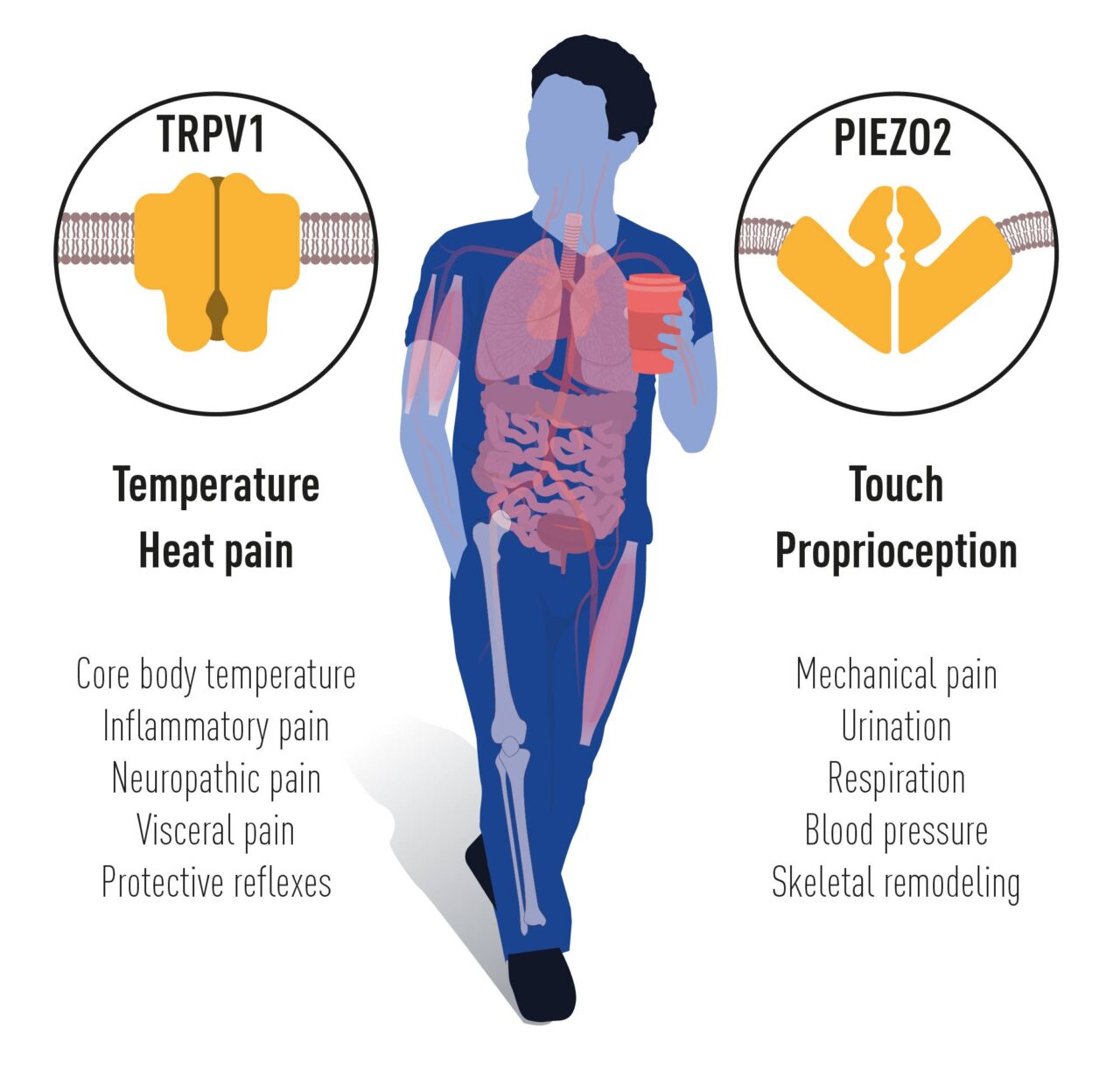 TRPV1 та PIEZO1 рецептори мають і клінічне значення. Мутації в цих генах асоційовані із рядом медичних станів. Відкриття цих каналів відкрило широке поле для подальших досліджень механізмів термо- та механорецепції у нормі і патології.