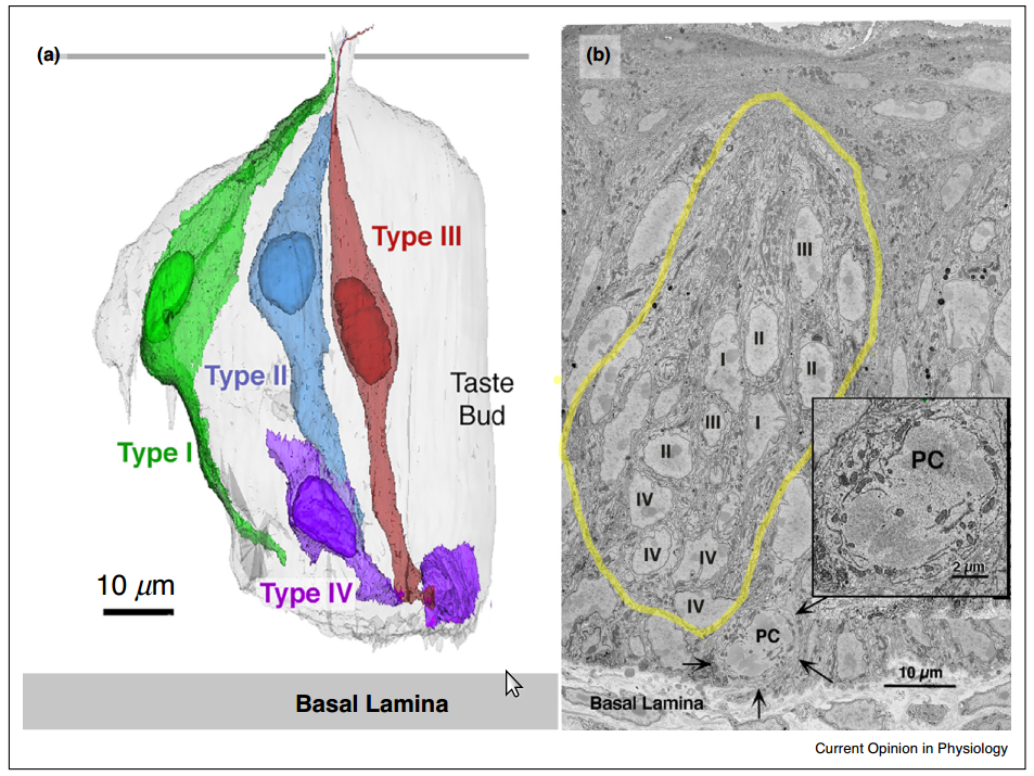 Джерело: Finger TE, Barlow LA. Cellular Diversity and Regeneration in Taste Buds. Curr Opin Physiol. 2021 Apr;20:146-153. doi: 10.1016/j.cophys.2021.01.003