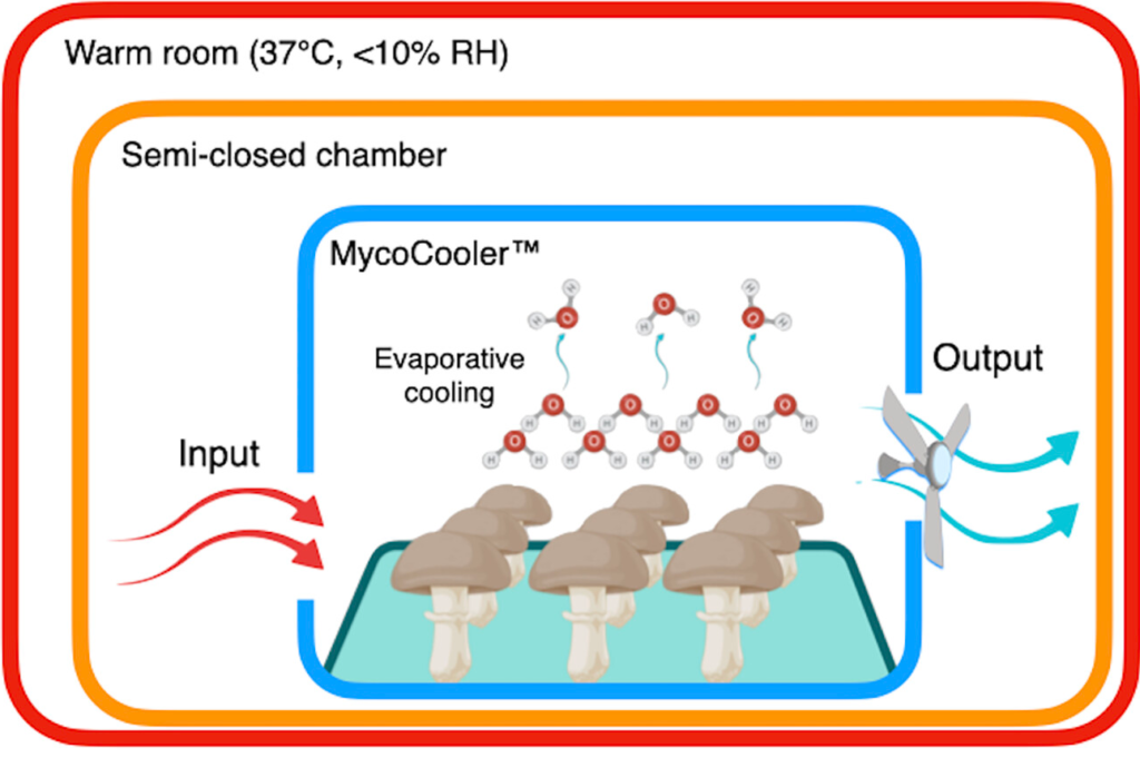 Автори вирішили використати охолоджувальну здатність грибів з практичною метою і створили прототип системи пасивного охолодження повітря на основі печериць (Agaricus bisporus). Їх помістили у пінопластовий бокс, через який за допомогою вентилятора проганялося повітря.