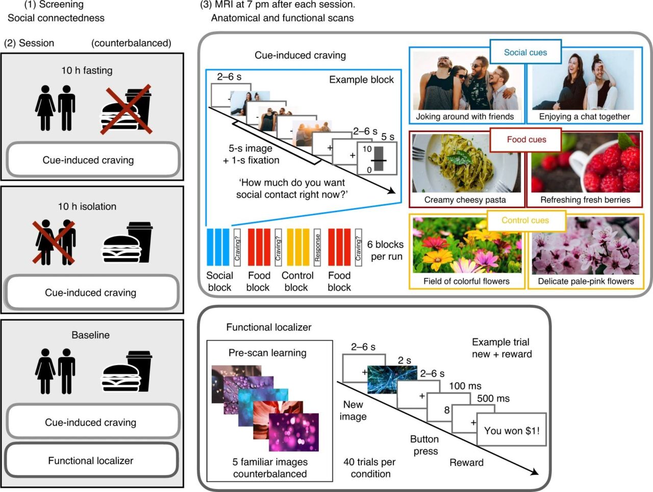 Якщо ми тривалий час не маємо доступу до їжі, то стаємо голодними. Активізується гіпоталамічний центр голоду та пов’язані лімбічні структури, що супроводжується як формуванням відповідного суб’єктивного відчуття, так і зростанням мотивації пошуку їжі – цей процес непогано досліджений. Учені перевірили, а як на мозку позначається вимушена соціальна ізоляція.