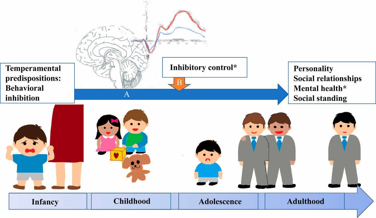 Виявилося, що малюки з більшим рівнем поведінкового гальмування (ПГ) виростали у інтровертів із нижчим рівнем соціальної взаємодії як в родині, так і з друзями. Також, збільшений рівень ПГ виявився фактором ризику щодо розвитку тривожно-депресивних станів.